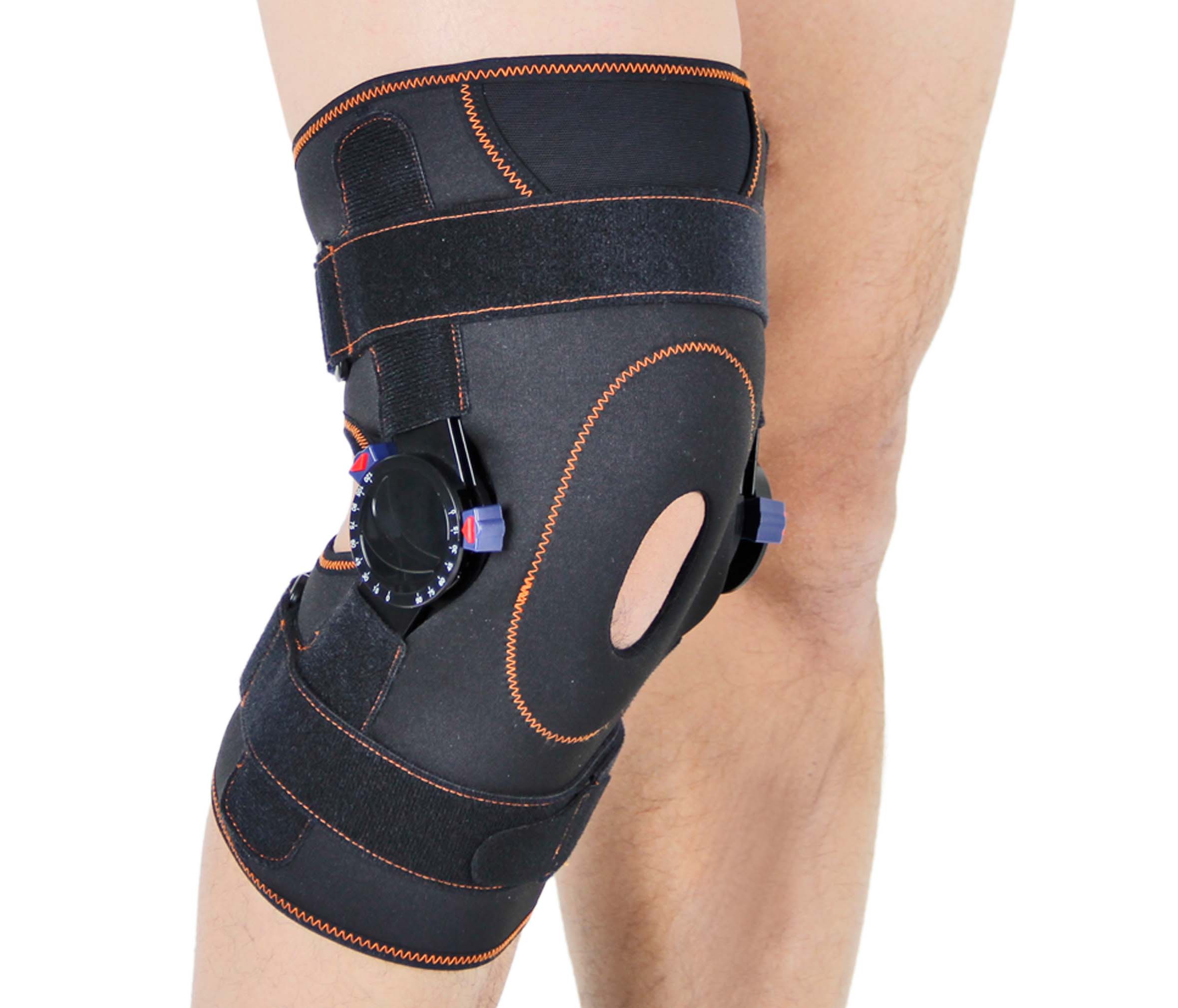 A7-043 is designed for post operative knee. ROM hinge provide strong support to the knee, allows easy control of flexion/extension during rehabilitation. Open type design and Velcro closure are easy to use. Silicone padding can help to stabilize kneecap. Breathable Airmesh and power net material can provide mild compression to the knee and muscles, and also very comfortable to wear.